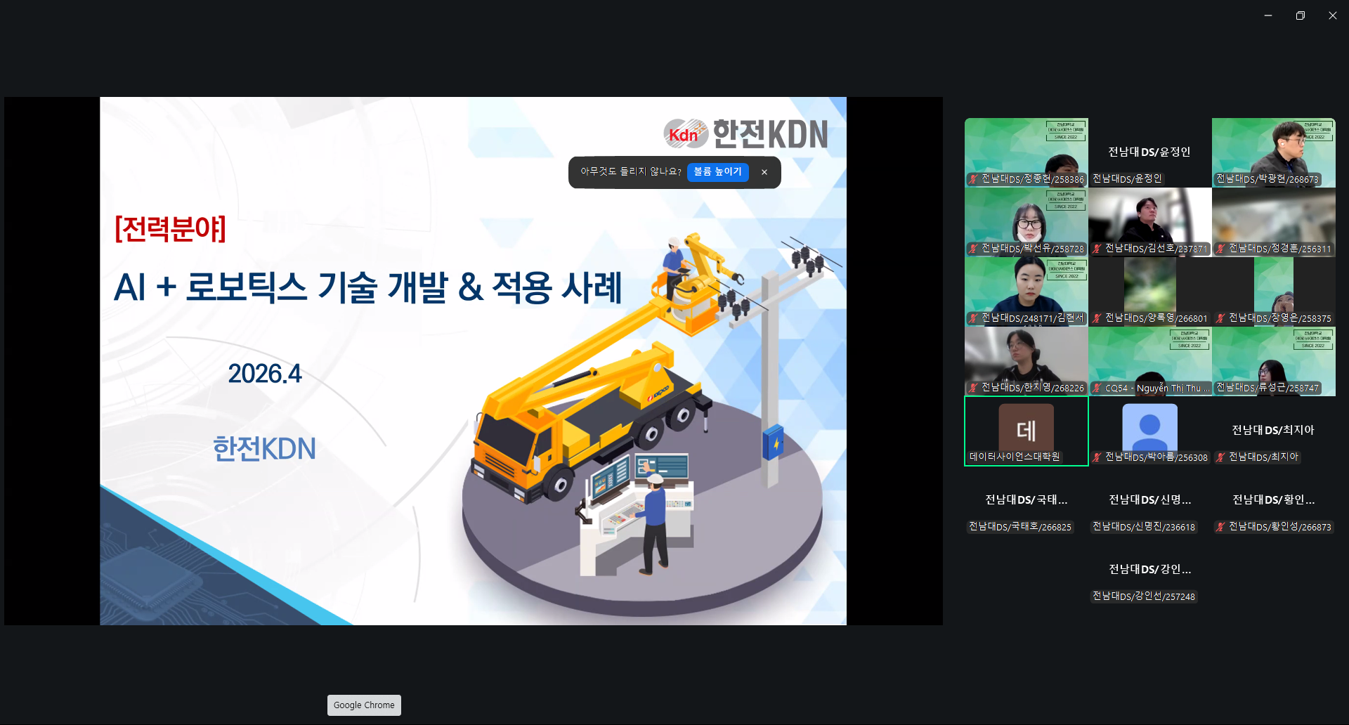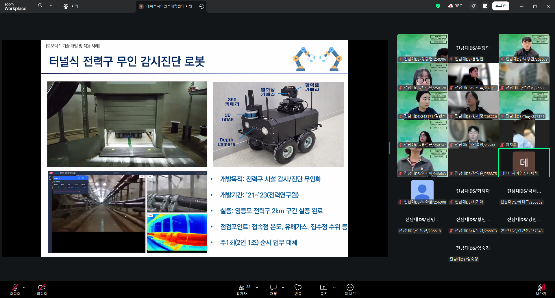 에너지 분야 Physical AI 연구 및 적용 동향을 주제로 진행된 이번 특강에서는, 한전KDN에서의 AI+ 로보틱스 기술 개발 현황과 적용 사례를 소개하였습니다.